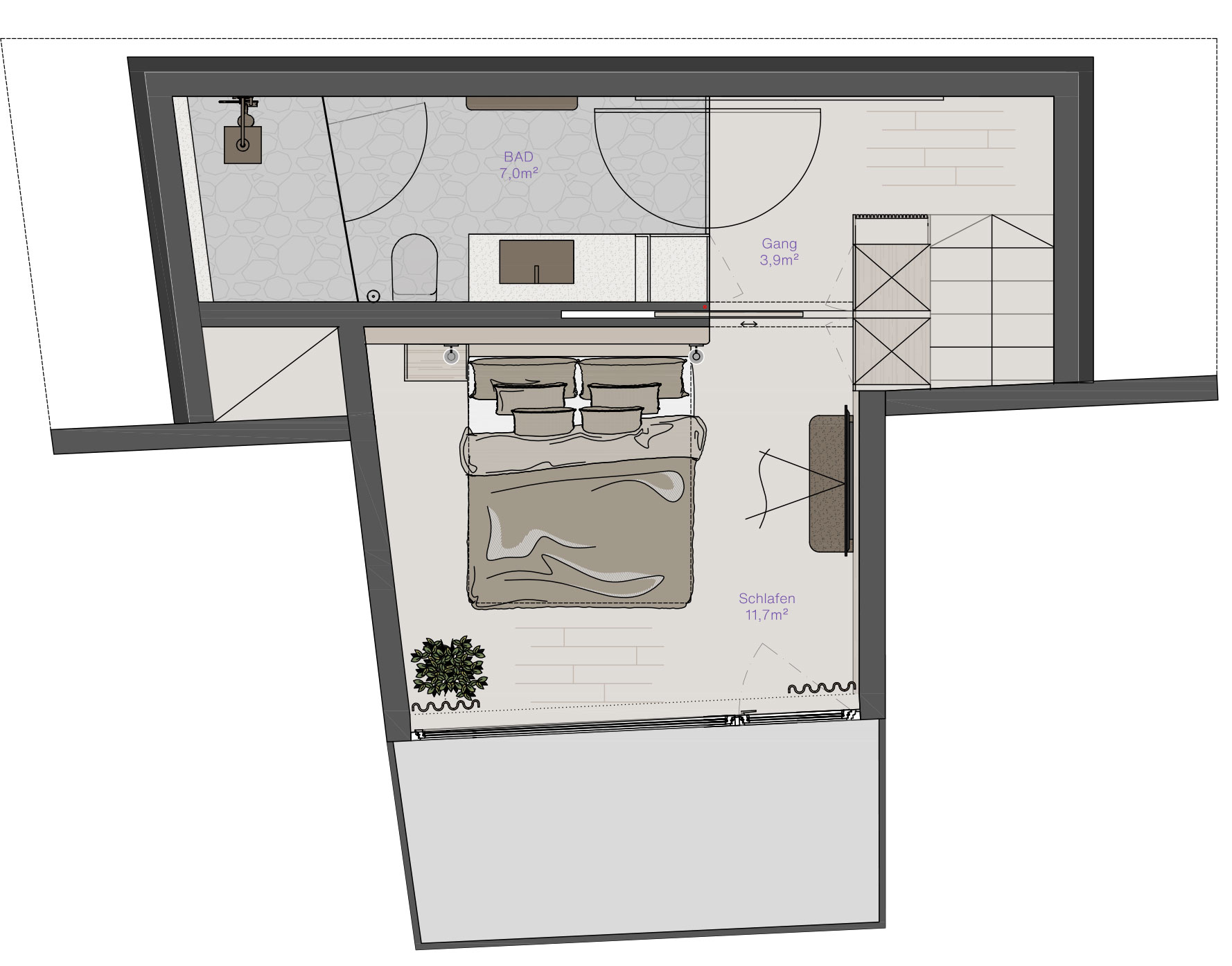 Schlafzimmer mit Badezimmer
