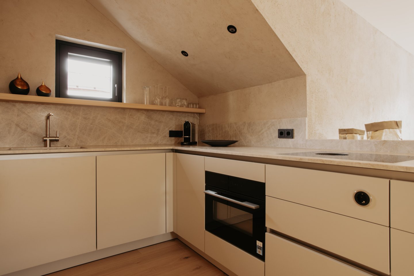 voll ausgestattete Küche (mit Backrohr, Kaffeemaschine, Geschirrspüler, Kühlschrank)