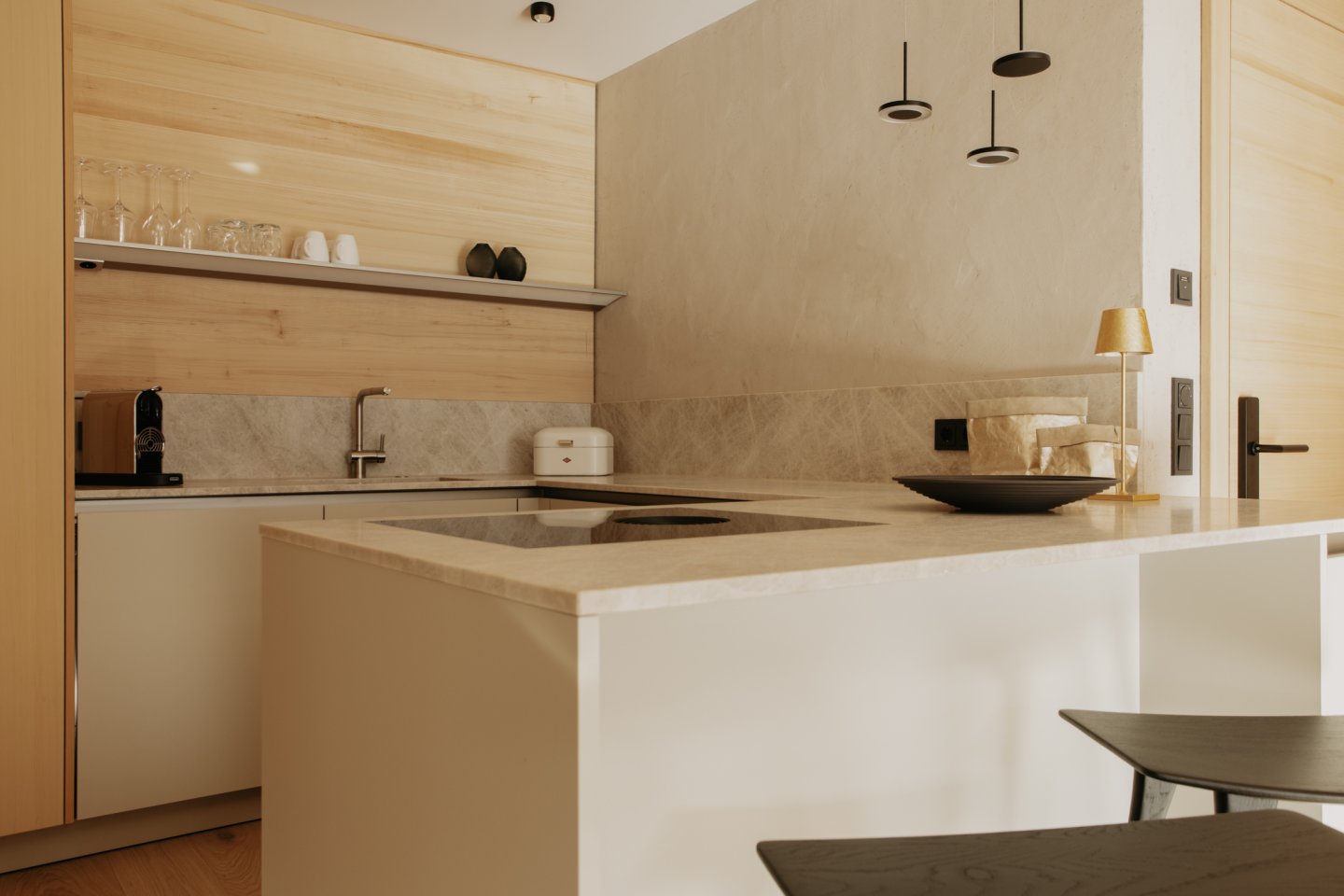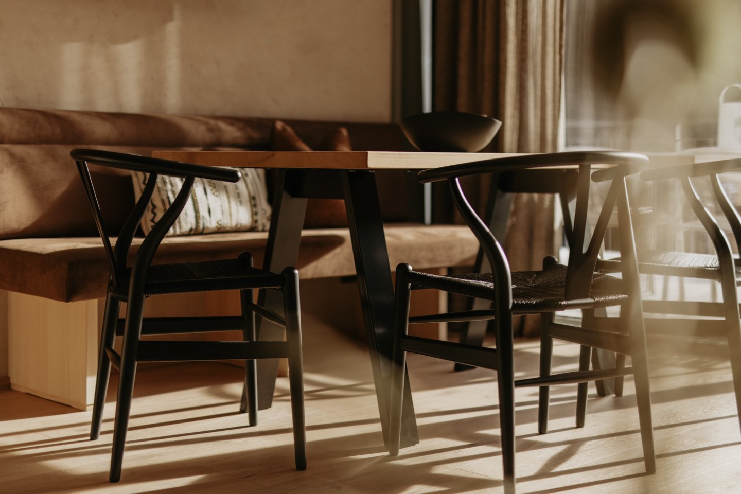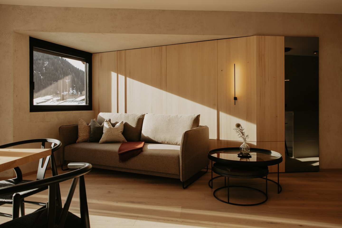 Dieses Apartment bietet Raum für 2 – 4 Personen und verbindet alpine Eleganz mit modernem Wohnkomfort. Hochwertige Materialien, klare Linien und der Blick nach Süden schaffen eine Atmosphäre, die Wärme und Weite zugleich ausstrahlt.