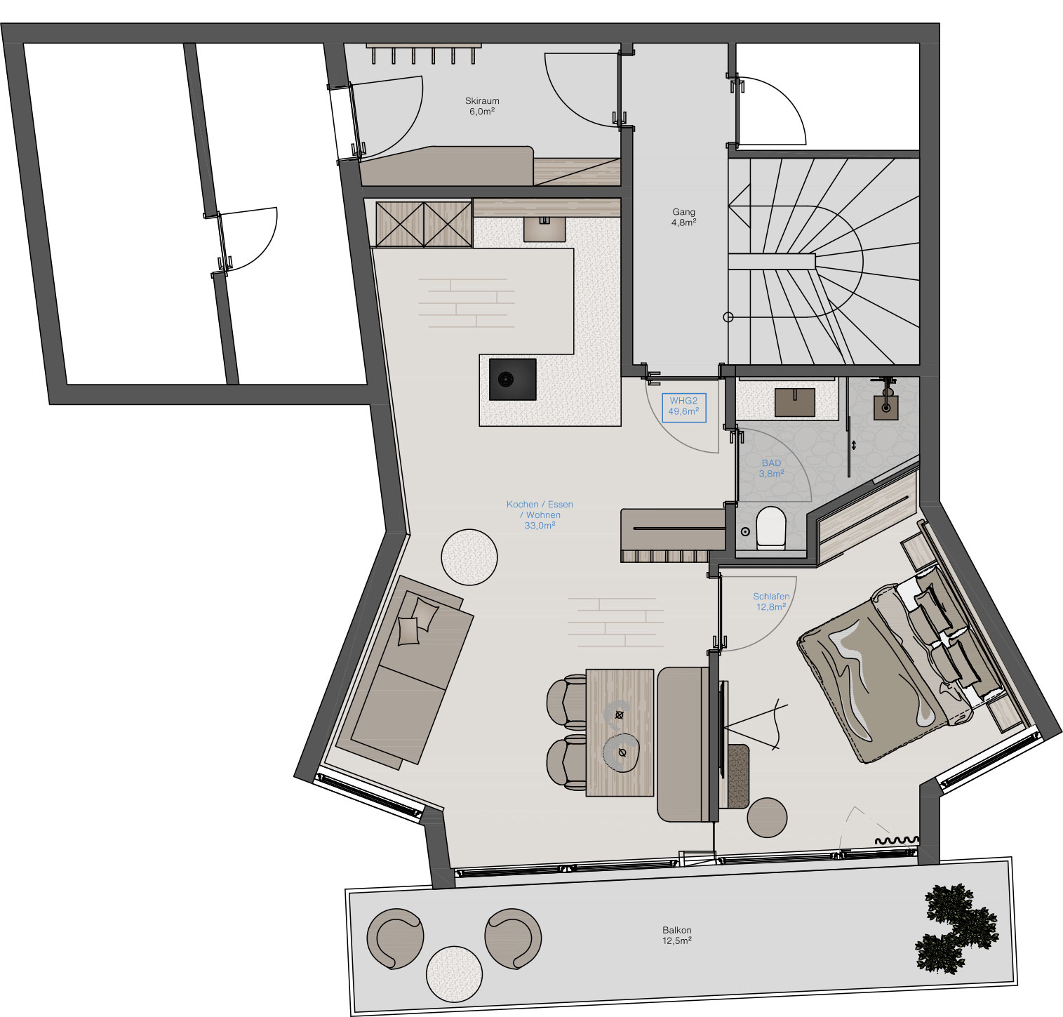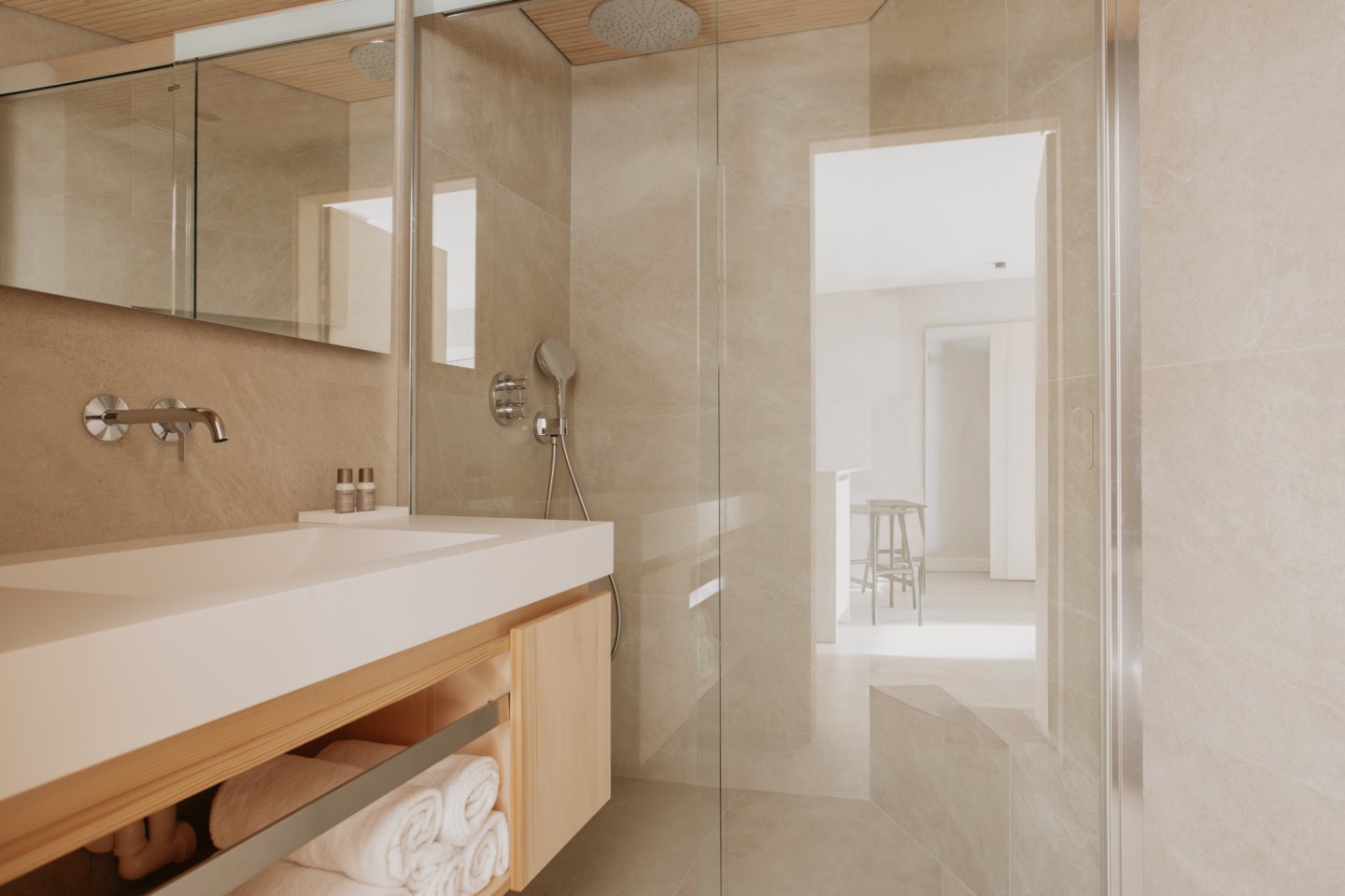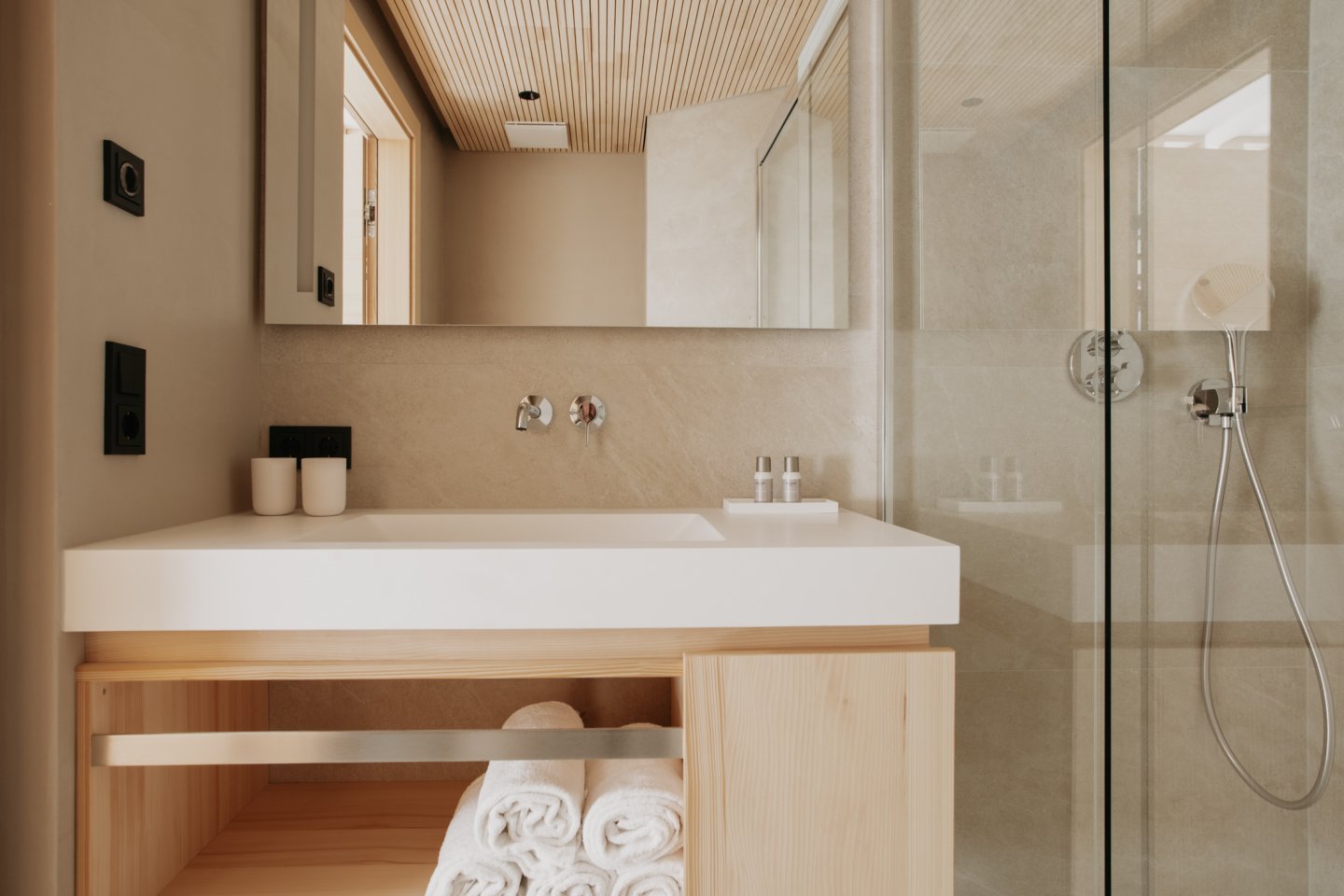 Dieses Apartment bietet Raum für 2 – 4 Personen und verbindet alpine Eleganz mit modernem Wohnkomfort. Hochwertige Materialien, klare Linien und der Blick nach Süden schaffen eine Atmosphäre, die Wärme und Weite zugleich ausstrahlt.