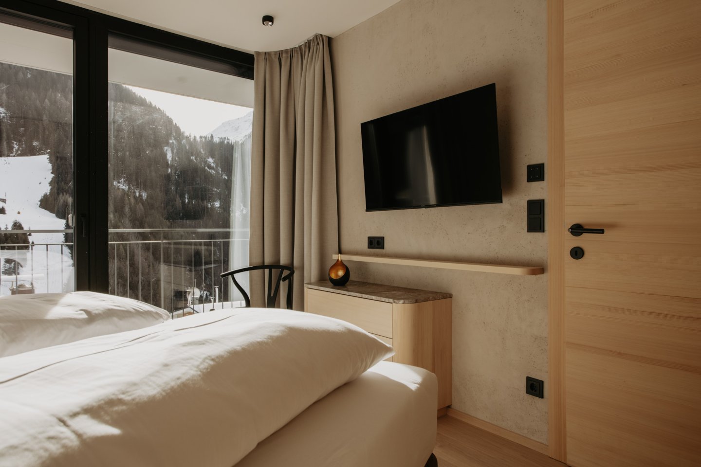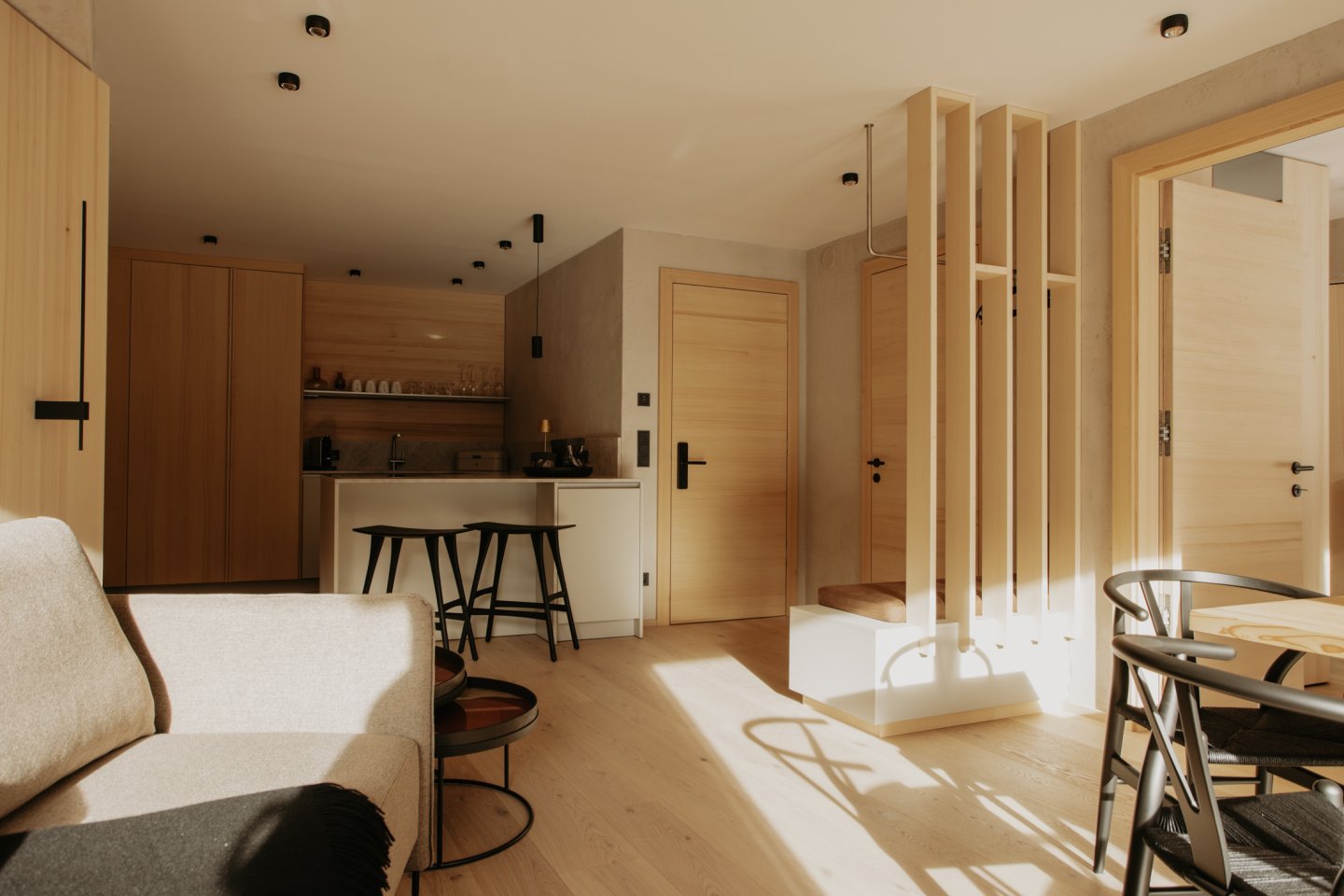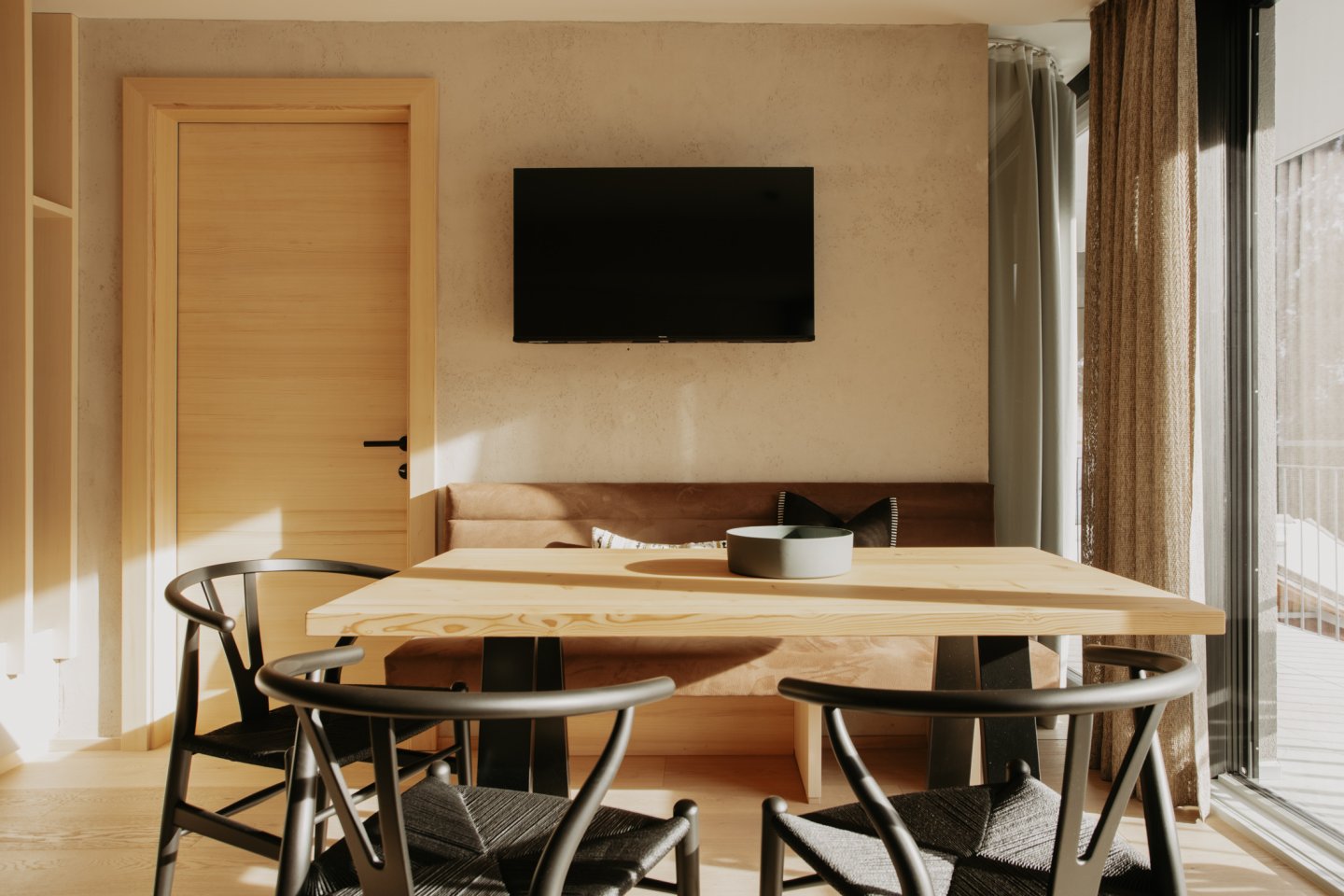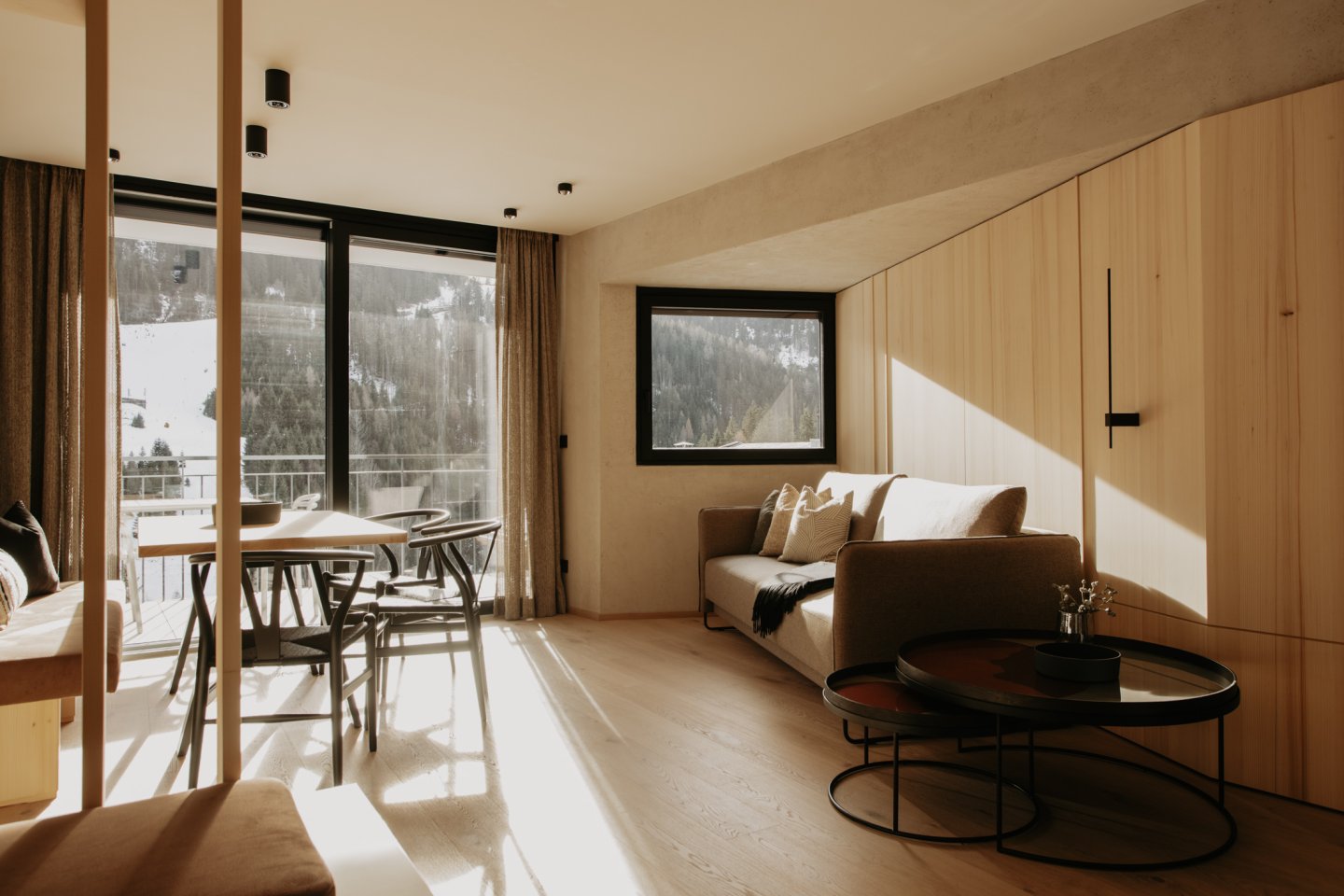 Dieses Apartment bietet Raum für 2 – 4 Personen und verbindet alpine Eleganz mit modernem Wohnkomfort. Hochwertige Materialien, klare Linien und der Blick nach Süden schaffen eine Atmosphäre, die Wärme und Weite zugleich ausstrahlt.