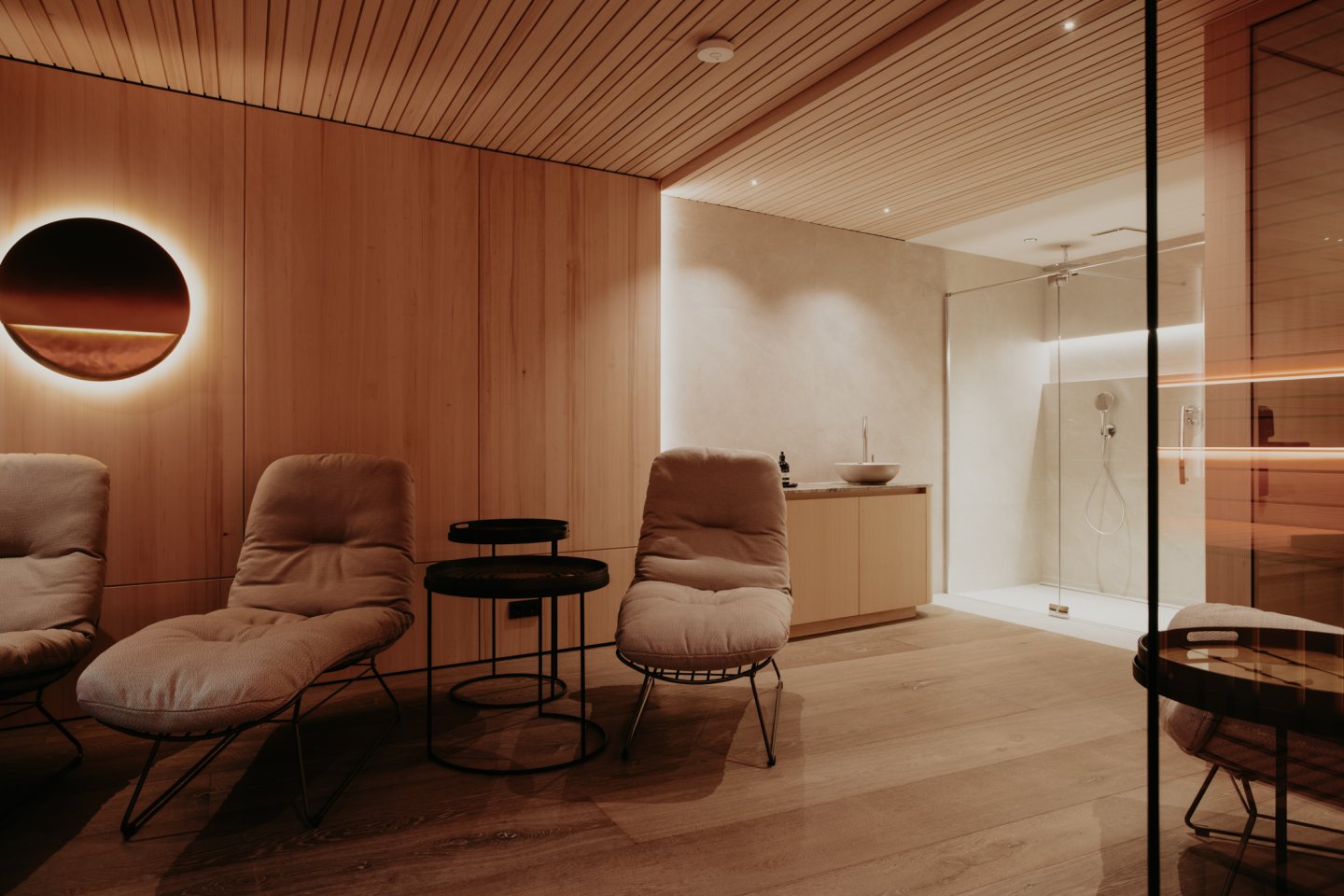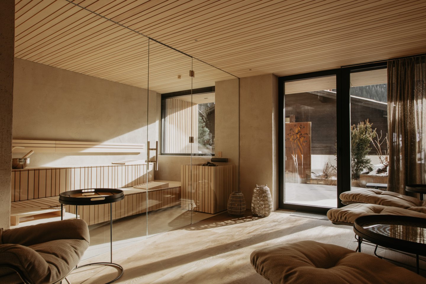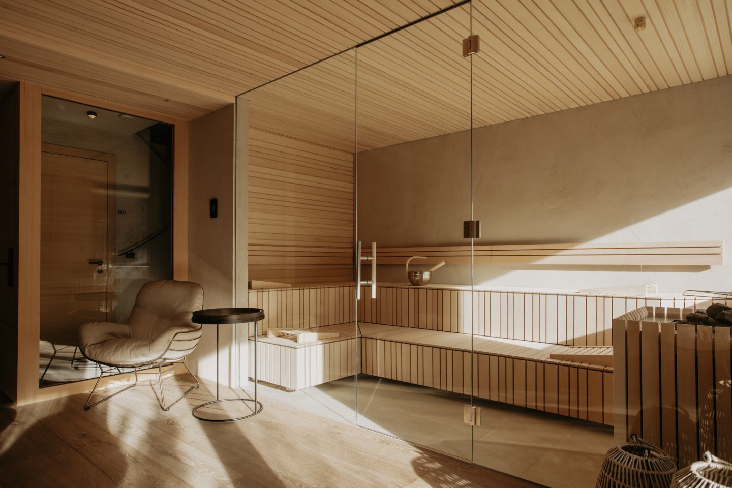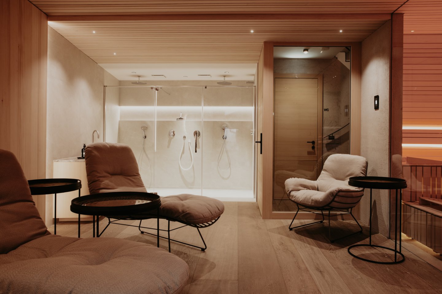 Der exklusive Wellnessbereich von TOM’S VIEW bietet Sauna, Duschen, Fitnessbereich, Ruheraum und einen sonnigen Balkon – immer begleitet vom besten Ausblick auf die Berge. Ein Ort, an dem Entspannung und Energie harmonisch zusammenfinden.